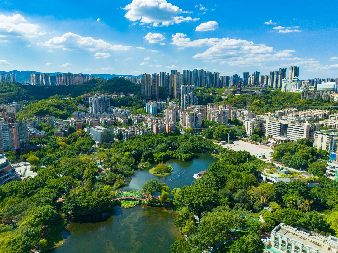 渝北区是重庆市近几年GDP常驻榜首的行政区,面积在主城区中较大,北接四川省广安市华蓥市、邻水县,山陵众多,却没有大山遮挡,发展空间大。区内有机场、高铁站、博览中心等设施。区内的园博园、鸿恩寺是市民常去的山地公园,也是汉服拍照热门地。